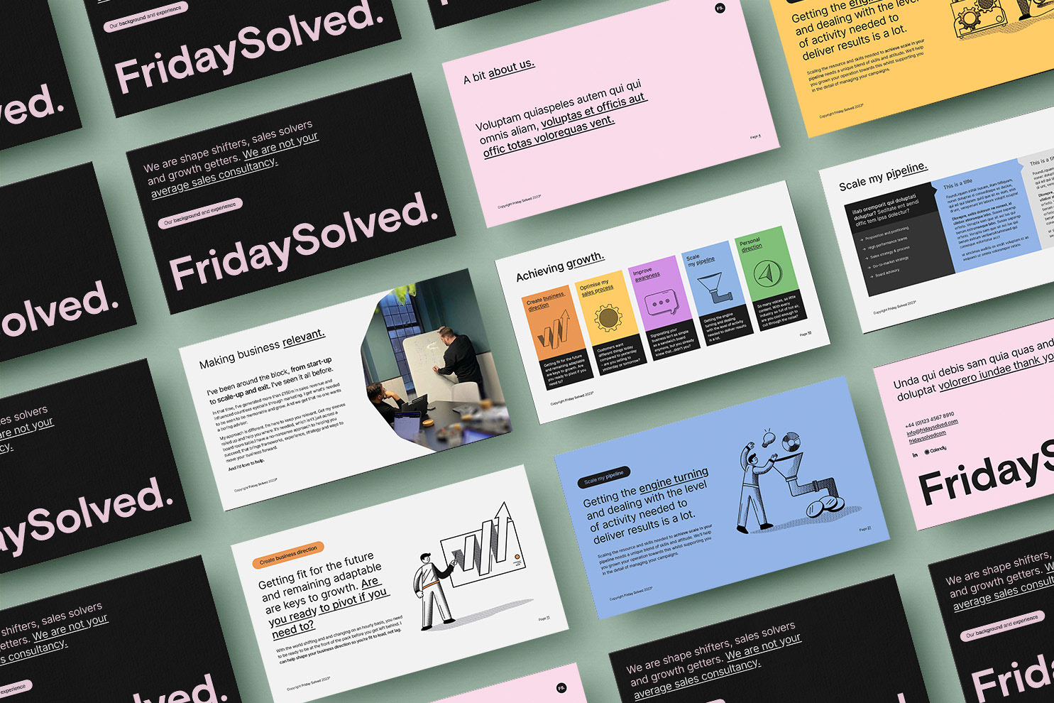 While working at Valiant Studio in Surrey I worked with other designers to create the visual identity for Friday Solved. I focused on the illustrations and brand collateral.
