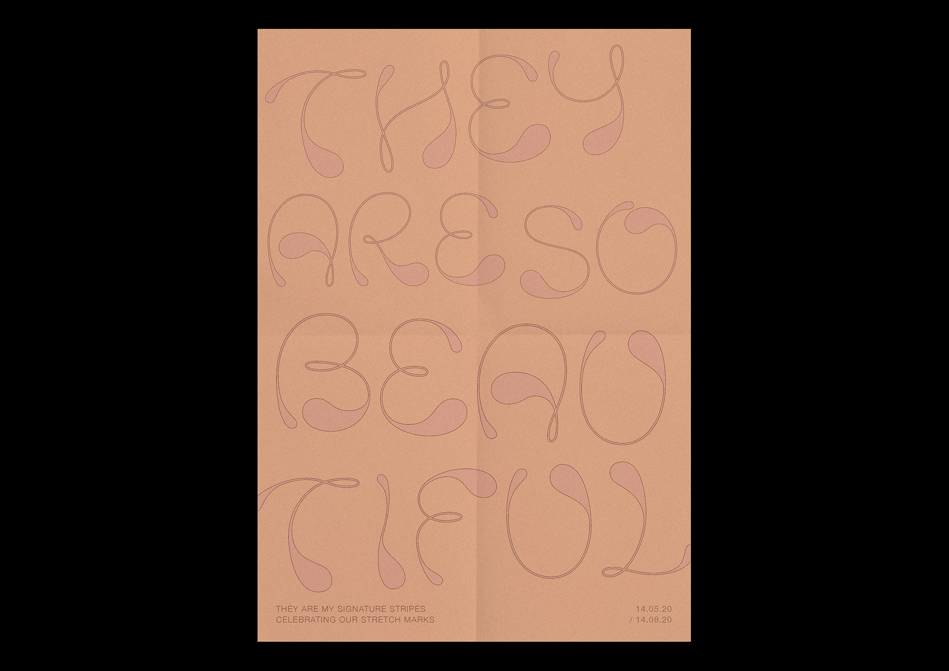 Posters designed for an imagined exhibition of photographs of stretch marks, called 'They are my signature stripes'. The exhibition celebrates the beauty of stretch marks.